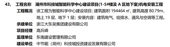 日前,,,,,浙江省装置行业协会宣布《关于宣布2024年度浙江省优质装置工程评价效果的通知》,,,,,位于湖州南太湖新区西风漾单位XSS-03-02-04C号地块、西风漾单XSS-03-02-04C-1号地块的由中节能实业公司建设的湖州市科技城智能科学中心项目(壹号娱乐app官网·太湖首座)获2024年度浙江省建优质装置工程,,,,,这一声誉是对项目装置质量水平的高度认可。。。。