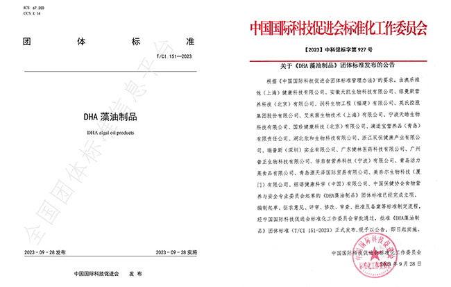 ¿µ½¡¹¤Òµ¹«Ë¾Ç£Í·Æð²ÝµÄ¡¶DHAÔåÓÍÖÆÆ·¡·ÕûÌå±ê×¼ÕýʽÐû²¼ |