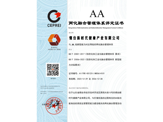 12ÔÂ29ÈÕ£¬£¬£¬£¬£¬¿µ½¡¹¤Òµ¹«Ë¾ÑĮ̀Éú²ú»ùµØ¡ª¡ªÑĮ̀ÐÂʱ´ú¿µ½¡¹¤ÒµÓÐÏÞ¹«Ë¾É걨µÄÁ½»¯ÈÚºÏÖÎÀíϵͳAA¼¶ÆÀ¶¨Õýʽ»ñÅúͨ¹ý²¢È¡µÃÏà¹ØÖ¤Êé¡£¡£¡£¡£¡£