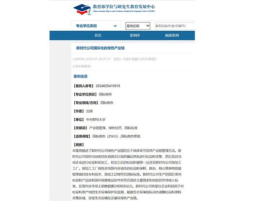 1月28日,,,,,,以康健工业公司绿色工业链为研究工具的论文《新时代公司国际化的绿色工业链》入选教育部学位与研究生教育生长中心案例库。。。