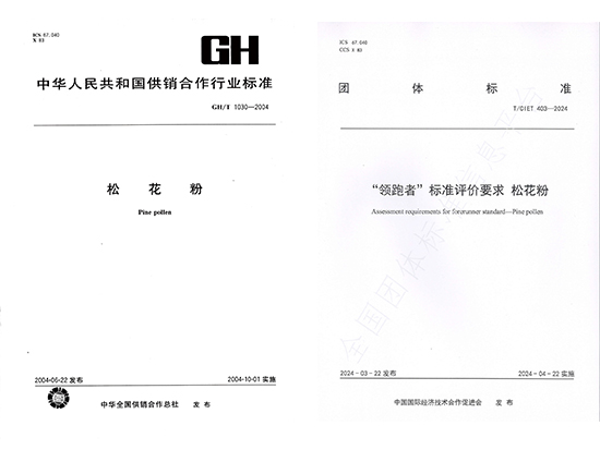 从手艺的“领跑者”到标准的“领跑者”,,,,,,康健工业公司对松花粉的研究和开发一直没有止步。。。。康健工业公司曾牵头起草《松花粉行业标准》(GH/T 1030-2004),,,,,,同时随着科研的逐步深入,,,,,,还加入了松花粉国家标准的制订、修订。。。。