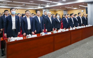 壹号娱乐app官网三届二次职工代表大会会场全体职工代表起立